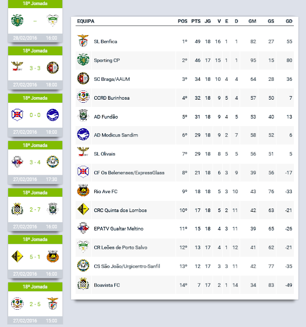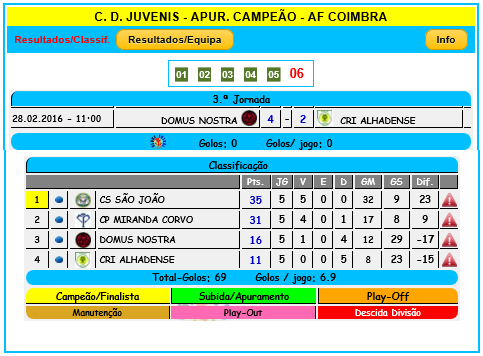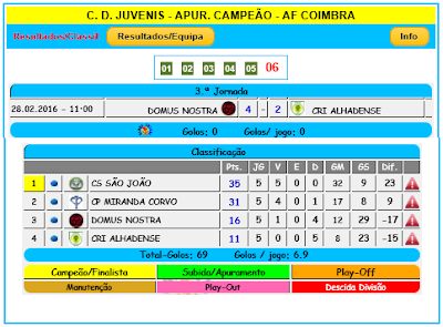 16h30 NS Condeixa (Femininos) 0-4 NS Pombal (Femininos)